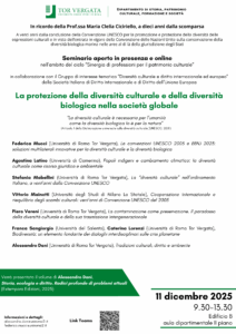 Giovedì 11 si svolgerà un seminario nell’ambito del ciclo Sinergia di professioni per il patrimonio culturale, in collaborazione con il Gruppo di interesse tematico Diversità culturale e diritto internazionale ed europeo della Società Italiana di Diritto Internazionale e di Diritto dell’Unione Europea. Al termine del seminario verrà presentato il volume di Alessandro Dani, Storia, ecologia e diritto. Radici profonde di problemi attuali.