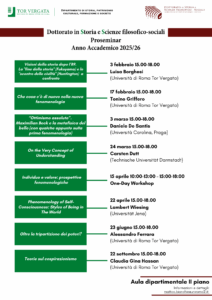 Dal 3 febbraio prendono il via i seminari organizzati dal Dottorato di ricerca in Storia e Scienze filosofico-sociali, che si svolgeranno nell’aula dipartimentale del II piano.