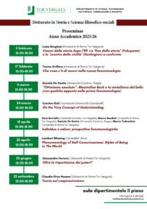 Dal 3 febbraio prendono il via i seminari organizzati dal Dottorato di ricerca in Storia e Scienze filosofico-sociali, che si svolgeranno nell’aula dipartimentale del II piano.