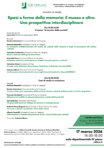 Nell’ambito della Ricerca Scientifica di Ateneo 2024 The Mission of Museums, from Territory to World Wide Web, Alberto Annarilli, Sandra Antoniazzi, Stefania Mabellini e Federica Mucci hanno organizzato una iniziativa di riflessione interdisciplinare sull’istituzione museale e sulla sua più recente evoluzione. Il punto di partenza dell’incontro è la consapevolezza della natura poliedrica e multiforme del “museo”.
